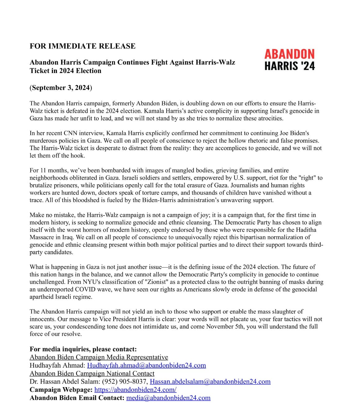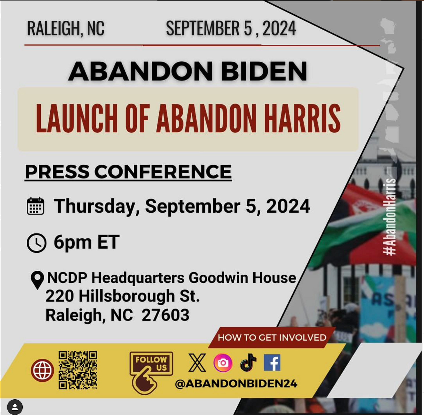 "Abandon Harris" Campaign Kicks Off at The North Carolina Democratic Pary HQ