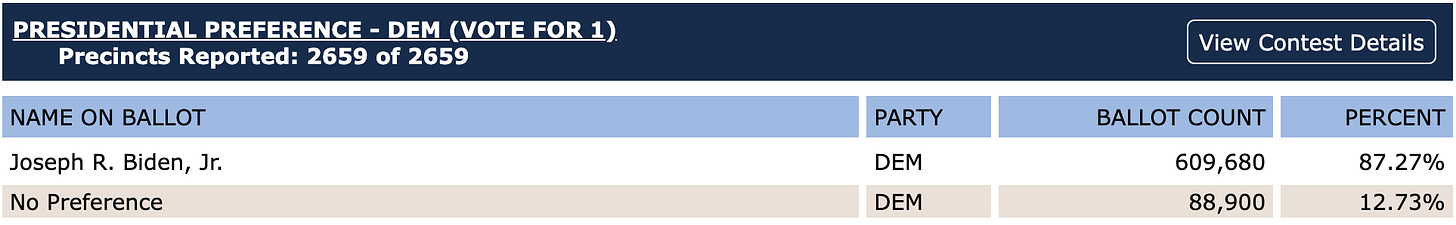 For perspective, nearly 100K Michigan Democrat voters cast “uncommitted” votes.